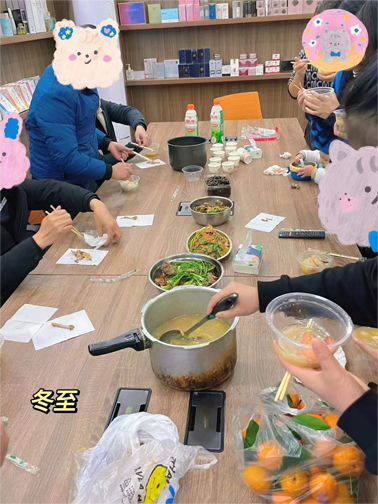 冬至是我國農(nóng)歷一個非常重要的節(jié)氣,也是一個傳統(tǒng)節(jié)日。冬至大如年,家家小團(tuán)圓。今天中午,外面天寒地凍,而肇慶巧巧日化廣州營銷中心的大廳卻溫暖如春。